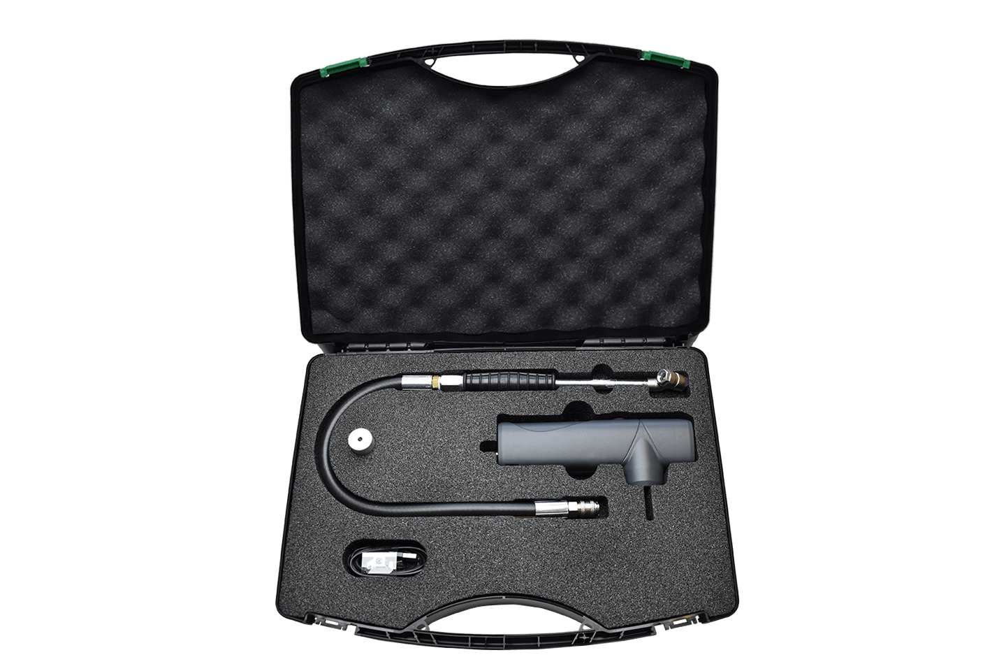 Bluetooth connected tire tread depth and pressure inspection tool. This tool is used by technicians to rapidly check and capture tire tread depth and pressure data. Connects to tire inspection apps from many leading tire manufacturers and also independent systems